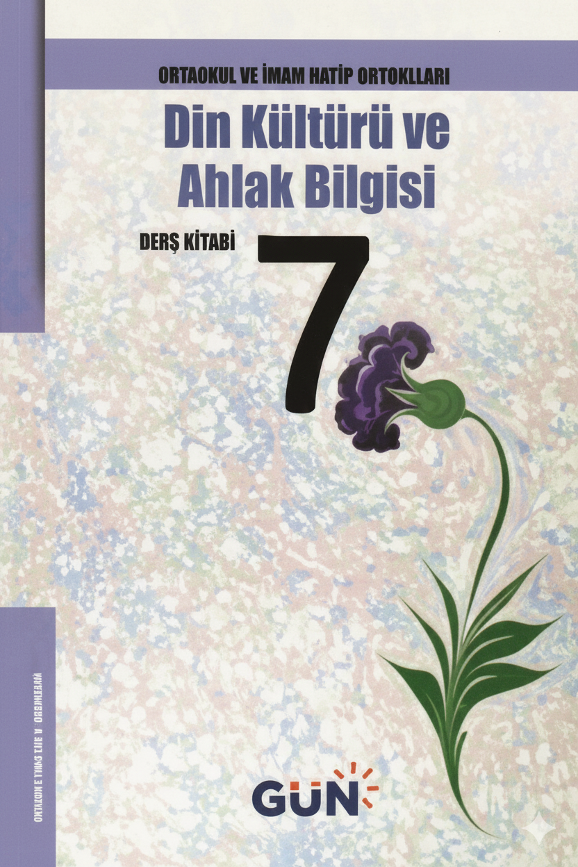 Bu yıl Din Kültürü ve Ahlak Bilgisi dersinde sizinle birlikte yepyeni bilgiler öğreneceğimiz harika bir yolculuğa çıkacağız. Bu yolculukta bize rehberlik edecek olan Gün Yayınları'ndan çıkan, Selahattin Çamyar tarafından kaleme alınan 7. Sınıf Din Kültürü ve Ahlak Bilgisi Ders Kitabı, sizin bu dersi daha iyi anlamanız ve temel dini bilgilerle donanmanız için özenle hazırlanmış bir eserdir. Toplam 144 sayfadan oluşan bu kitap, hem içeriği hem de sunumuyla öğrenme sürecinizi kolaylaştıracak niteliktedir.